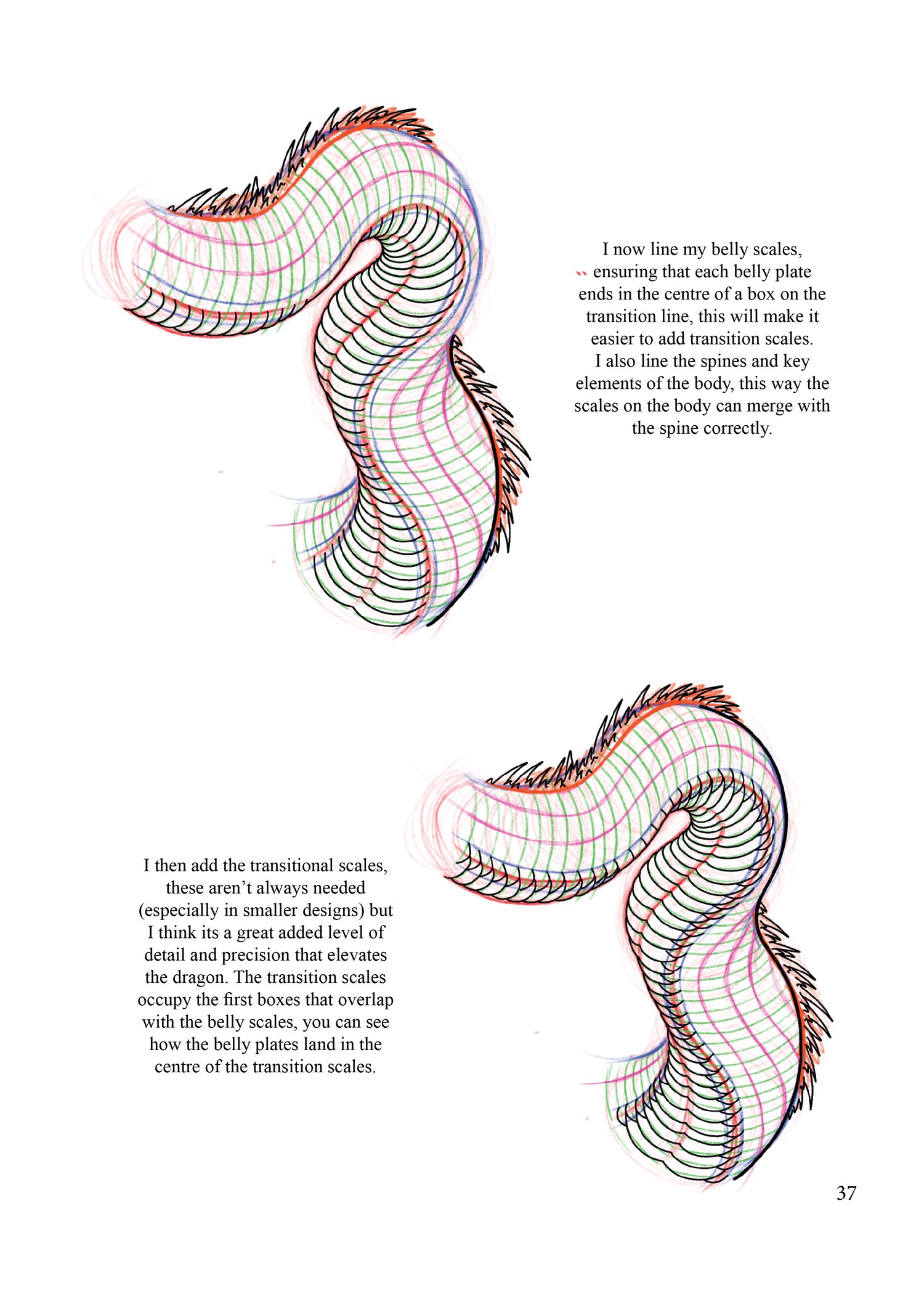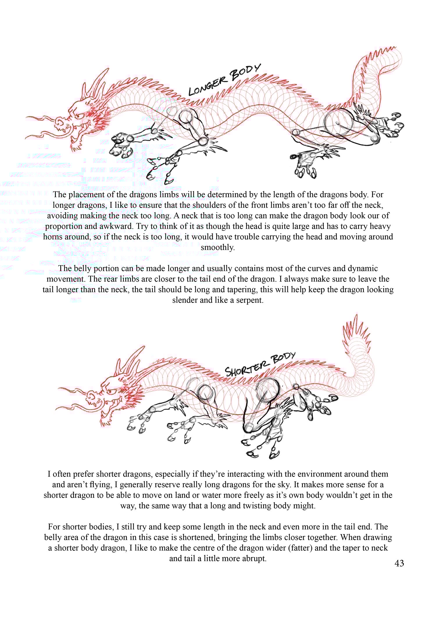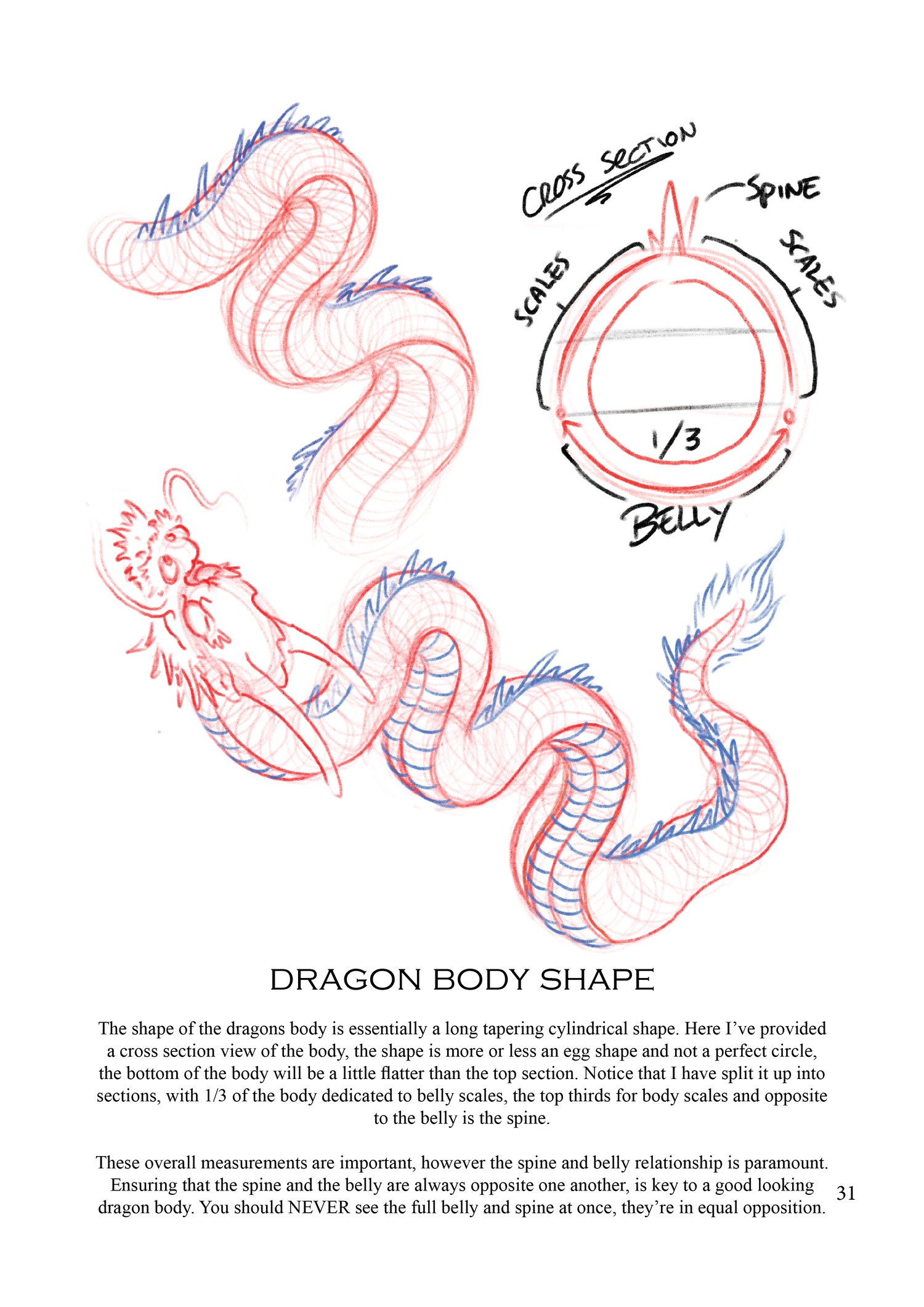 - Hand drawn diagrams for each section of dragon anatomy, including head, body, scales and more